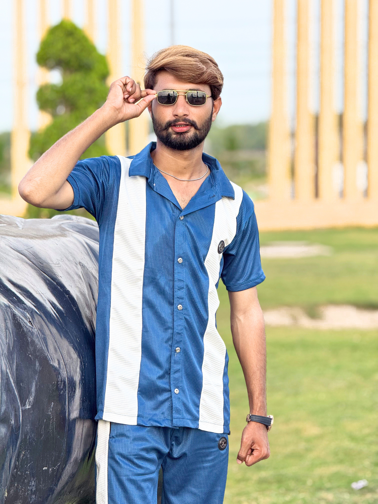 ➥ Textured Front with Duo Line: Dual white stripes on the front give a bold and sleek appearance.